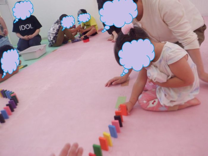 今日はみんなでドミノを長くつなげるチャレンジをしました何度か途中で倒れてしまうハプニングもありましたが、