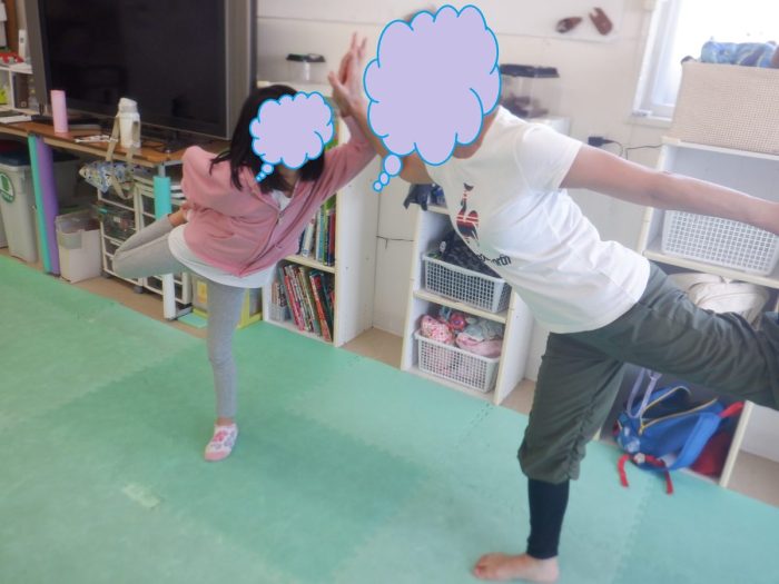 キッズヨガも先生の見本を見ながら一生懸命にバランスをとったりポーズを決めていましたよ✨