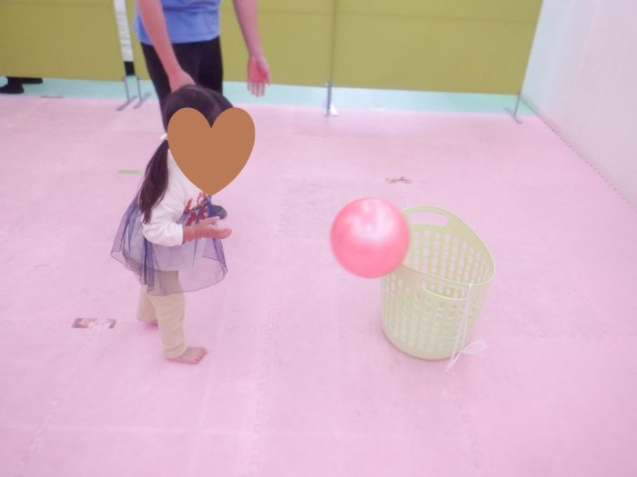 ボール運動は、投げたり、キャッチしたり、指導員のお話座って聞きながら頑張っています!