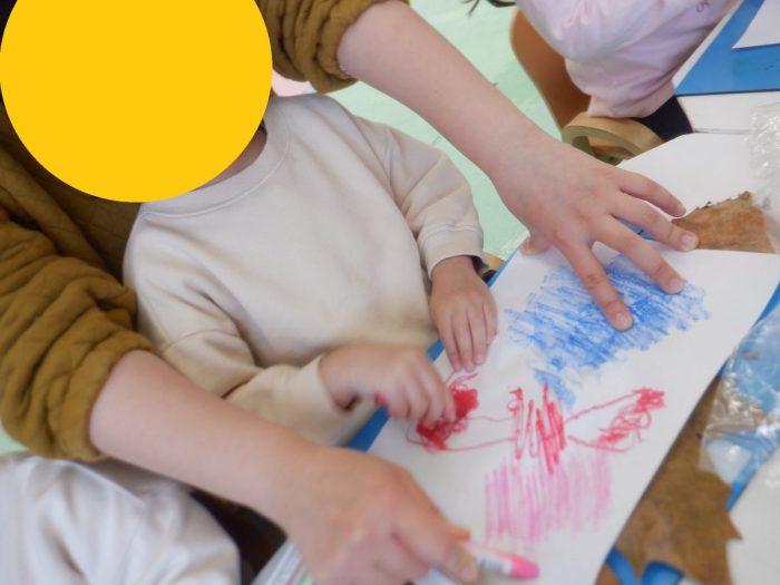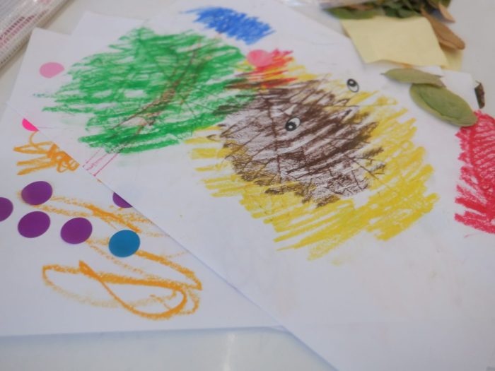 帰った後、落ち葉は紙の下に敷いてクレヨンでぬりぬり