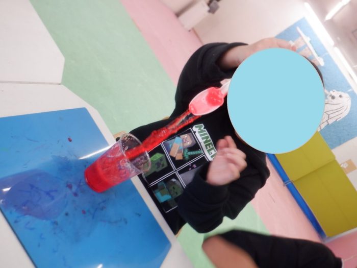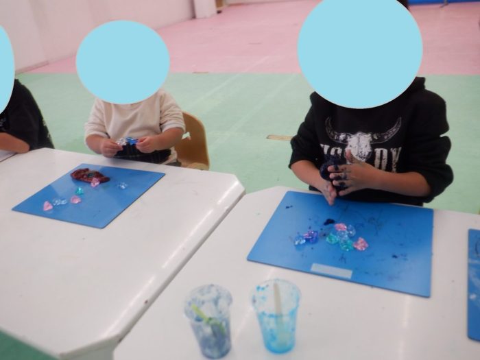 スライムの感触や伸ばしたり潰したりして楽しんでいます😊