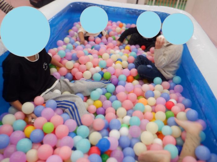 お勉強が終わった後は室内でスライム作りやボールプールで遊んでいます![]()
