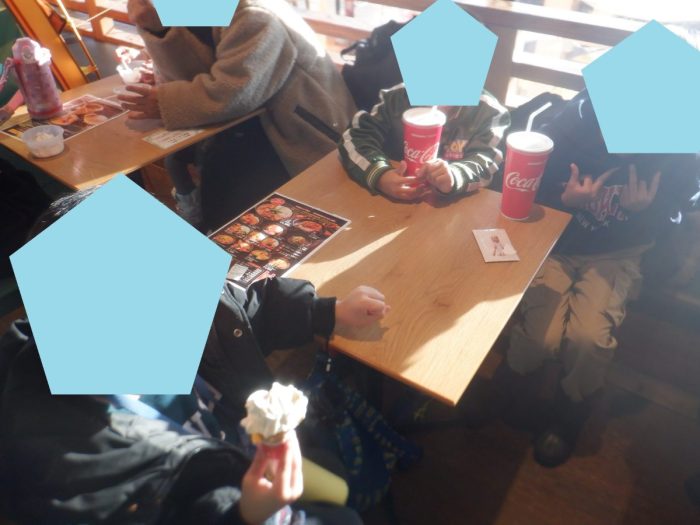 朝の会後すぐに出発し、恵庭の道の駅で昼食を食べてます