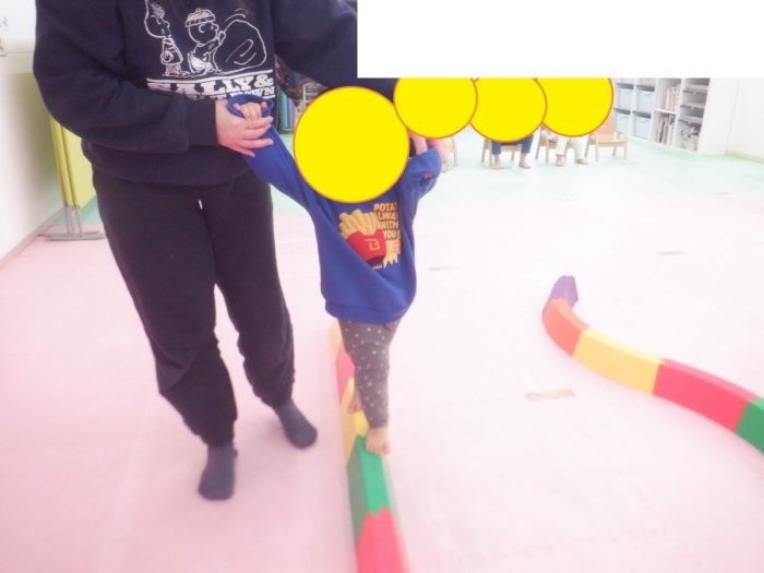 平均台、指導員と手を繋いだり一人で落ちないように慎重に歩いていましたよ✨![]()
