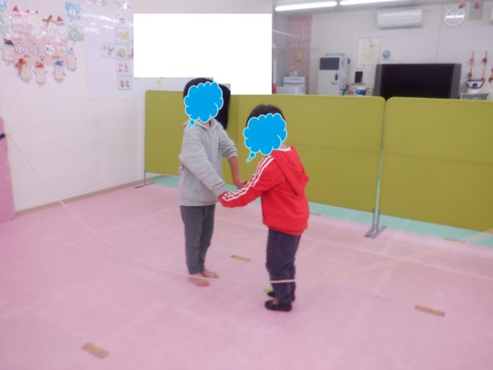 小さい子チームは揺らした縄をジャンプする練習を頑張りました👍