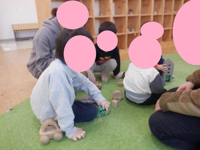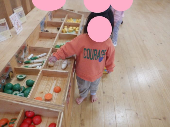 おままごとやたくさんある木製玩具の中から、好きな物を選び楽しく遊んでいましたよ