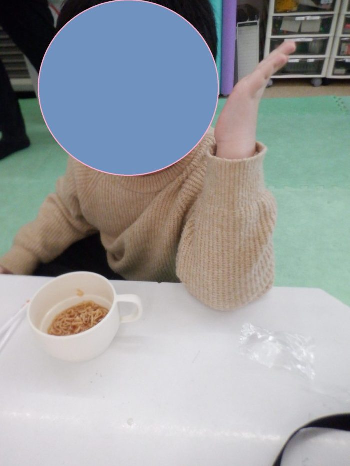 みんな大好きお菓子の時間では、今日は冬休みということでラーメンを食べています🍜