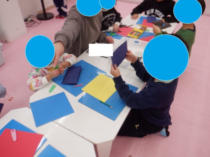 大きい子チームは、苦手なハサミを頑張って使用し鬼のお顔の形やお顔のパーツを作ってくれています✂️