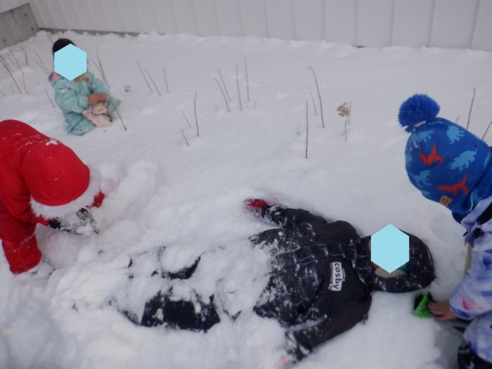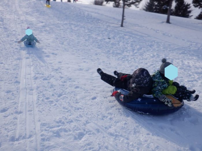 それぞれそりやチューブ滑りを楽しんだり、仲良く友達を雪に埋めたりして過ごしています