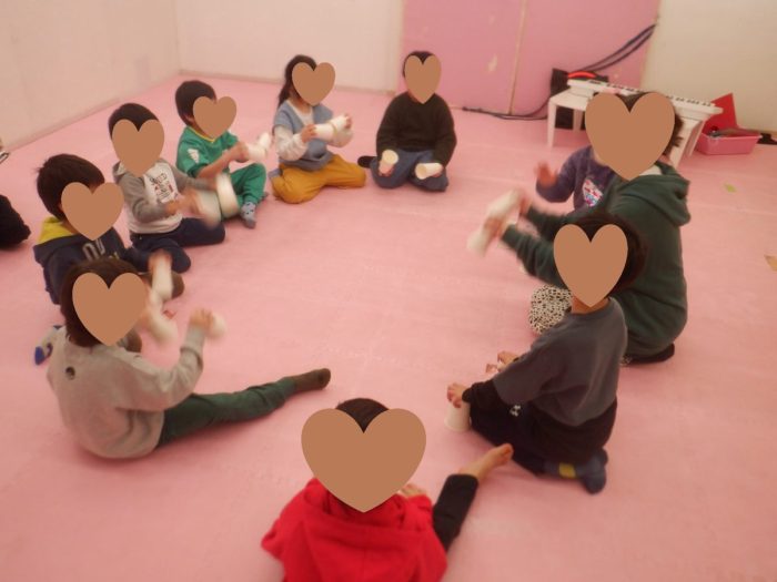 小さい子チームは、フープやスカーフを使った音楽遊びがとっても上手です![]()