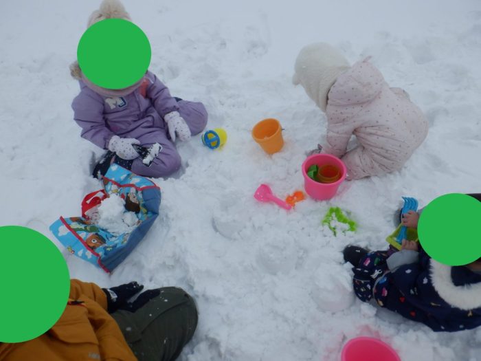 雪山の下ではお家づくりをしてごっこ遊びも盛り上がっていましたよ