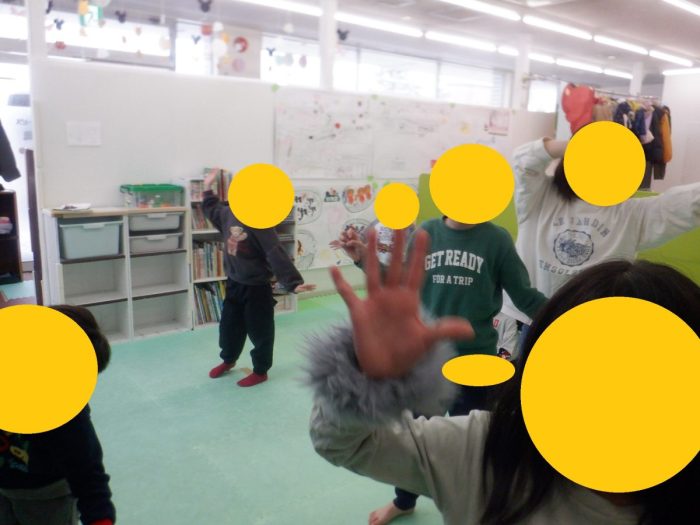 小さい子チームはメインのダンス、大きい子チームは「ランニングマン」のステップ練習にも