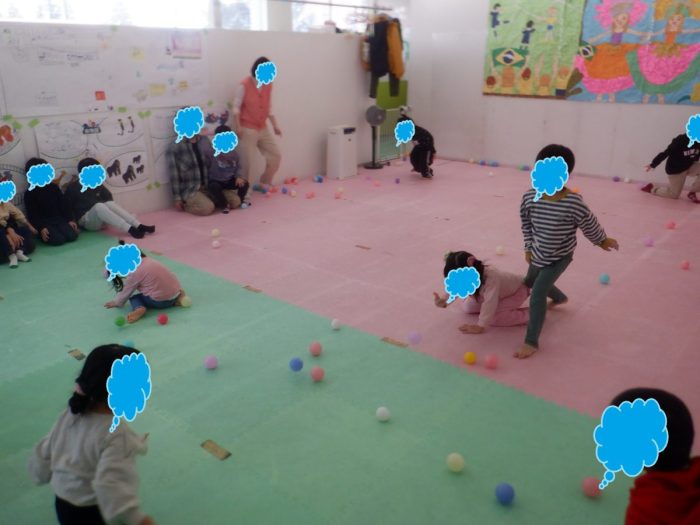 みんな一生懸命ボールを転がしていました![]()