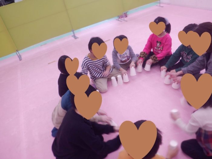 午後からは、リトミックで、手遊びや、スカーフ、カップなどを使ってリズムに合わせて元気いっぱいに活動することが出来ました!