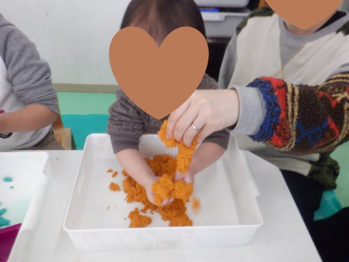 午前は、自立課題をし、皆大好きな砂粘土遊びを行っています!