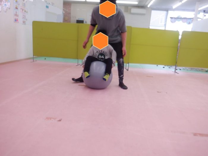 今日は運動の日で、バランスボールを使って体幹を鍛えています。