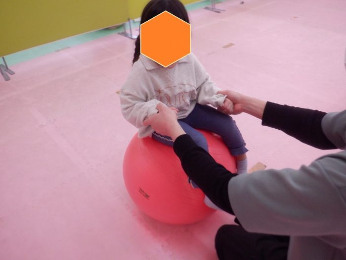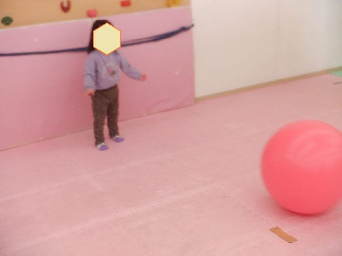 今日は運動の日で、バランスボールを使って体幹を鍛えています。