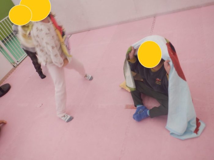 余った時間ではバスタオルを使用した遊びをし元気いっぱいに取り組んでいます😊