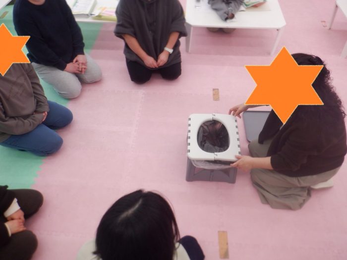 ミーティングの時間を頂きました。災害時についての事業所内講習(簡易トイレの